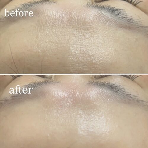 おでこは横シワになります。ラミピールの良さは、縦シワ、横シワ、それぞれに良い成分が入ってます!1回の施術です